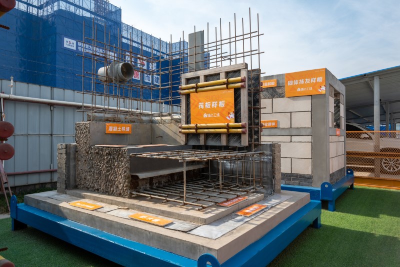 土建样板展示:从源头上让理想的家更坚固。臻心工场对每个分项工程都要求落实到工艺样板,让客户清晰看到并了解从砌体抹灰、原始结构面至屋面ALC隔墙板安装等各项工序的具体实施过程及施工步骤。