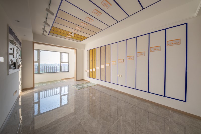 工艺工法展示:每一个标准化的施工环节都透明可见。从建筑外墙到室内墙面,从楼层保温到龙骨吊顶,在客户看不见的隐蔽工程里,以断面分层的方式逐一呈现,细致地展示了精装交付前房屋所经历的标准化工艺打磨细节。11道工序锤磨墙面,“面面”俱到。干法地暖,更好的采暖效果。