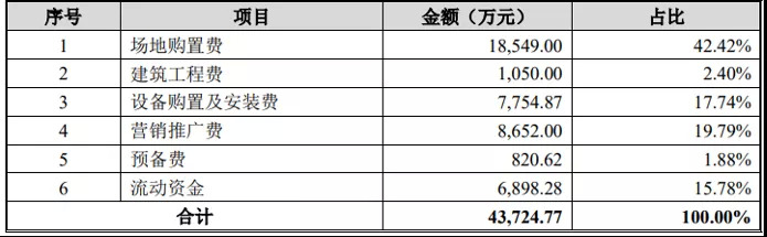 4.3亿的募资,1.8亿用来购买写字楼,占比高达42%,比投设备及营销的占比还高。