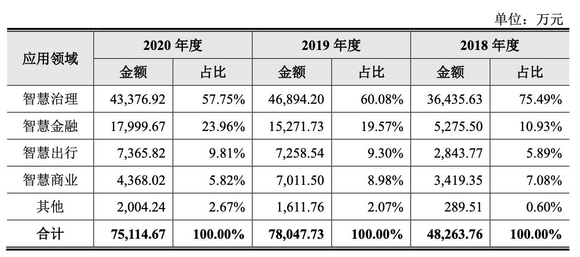 在信中利的金融科技投资版图中,云从科技科创板IPO申请已获受理。云从科技涉足视觉人工智能,产品包括刷脸支付终端设备“如意刷脸支付PAD”、“刷脸支付盒子”。招股书显示,其智慧金融市场业务还涉及信贷风险管理等场景解决方案。“个人信息数据”产品则主要为研发过程中的数据训练以及为部分客户提供的公有云服务,2020年营收占比1.06%。按应用领域分类,智慧金融对云从科技的收入贡献在上升,2020年相关收入1.79亿元,占总营收比达23.96%。