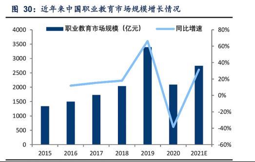 根据艾瑞咨询的数据统计,2018年中国劳动力人口超过8亿,2019年国内职业教育市场规模为2688.5亿,同比增长13.3%,预计将在2020-2022年继续保持13%以上的增长。