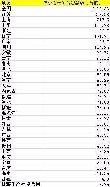 值得注意的是,超过全国平均贷款额的只有以上6个地区。其他地区人均贷款额均低于全国平均水平。这说明,以上6个经济发达地区房价高、贷款金额大,而且贷款人多,因此拉高了全国平均水平。这也反映出平均值统计的不靠谱。生活在其他地区的人,本来没有达到平均水平,却成为了“被平均”的人。