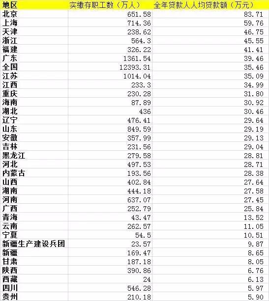 融360房贷(公众号fangdai123)根据《2015年全国住房公积金报告》计算得出了各地区全年贷款人人均贷款额如下:
