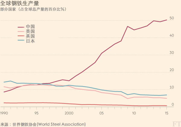 “金融危机过后,(钢铁业)最初随着中国的增长走出困境;中国吸收了大量原材料,然后是钢铁,”行业顾问克里斯托弗 博曼(Christopher Beauman)说,“因为中国变得太巨大了,当中国打喷嚏的时候,世界其他地方就得了肺炎。可以说中国的低迷对钢铁业的冲击大过对其他任何行业的冲击。”