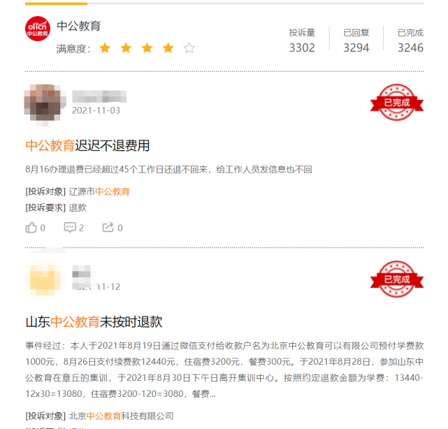 值得关注的是,不少消费者反映,中公教育存在退款难的现象。