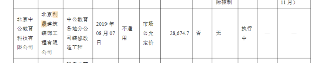 值得注意的是,在中公教育2019年和2020年报中,创晟建筑出现在其他重大合同中。年报显示,创晟建筑与北京中公教育科技有限公司于2019年8月签订了关于中公教育各地分公司装修改造工程的相关合同。合同价格以市场公允价格为准,约2.87亿元人民币,截至2020年年末,合同仍在执行中。年报明确,创晟建筑与公司无关联关系。