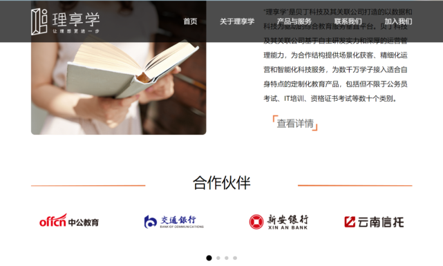 官网称,“理享学”是贝丁科技及其关联公司打造的以数据和科技为驱动的综合教育服务垂直平台。贝丁科技及其关联公司基于自主研发实力和深厚的运营管理能力,为合作结构提供场景化获客、精细化运营和智能化科技服务,为数千万学子接入适合自身特点的定制化教育产品,包括但不限于公务员考试、IT培训、资格证书考试等数十个类别。