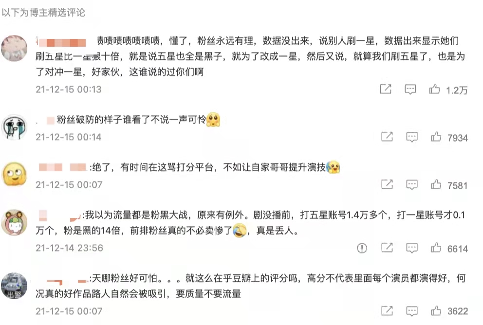 粉丝一方面横眉冷对怒斥水军,一方面也会试图利用规则:集中人力打五星想要给自己的偶像的作品一个好口碑,同时反手给对家打一星起到拉低风评的作用。