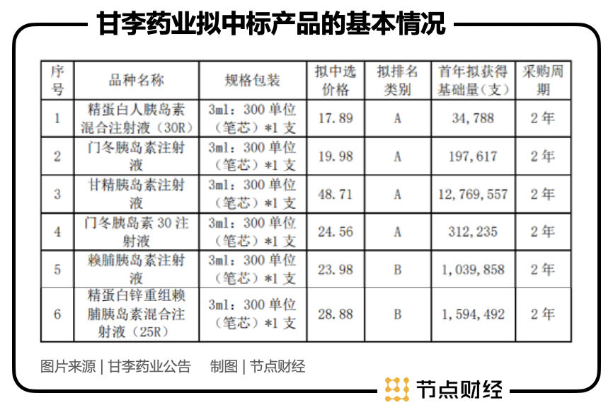 刚刚落地的胰岛素集采结果显示,甘李药业中标6个产品,降价幅度和限价比最低为40%,最高63%,采购周期2年。