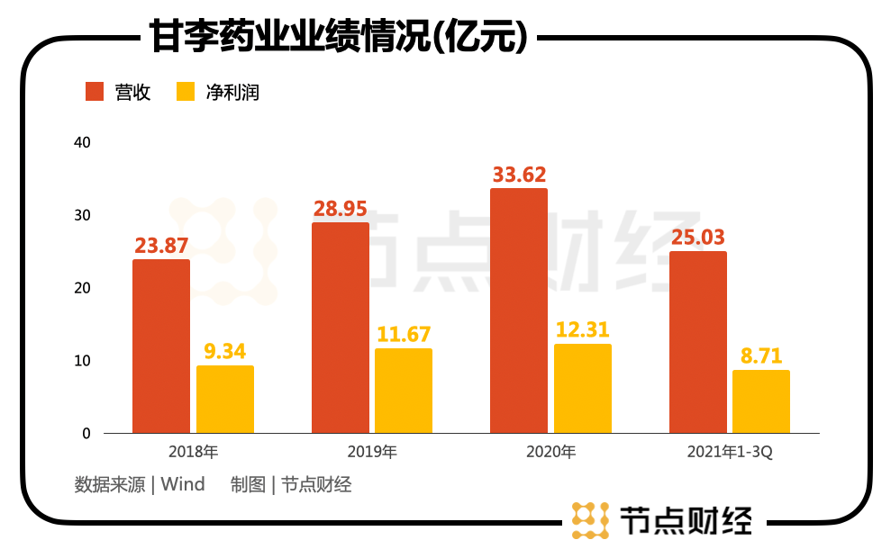 财报显示,2020年,甘李药业实现营业收入33.6亿元,同比增长16.12%;净利润12.3亿元,同比增长5.43%。截至2021年9月30日,甘李药业营业收入为25亿元,同比增长14.21%;净利润8.7亿元,同比增长26.99%。