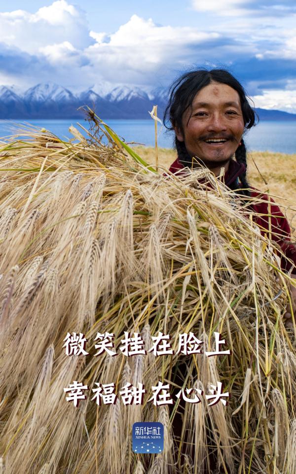 △10月20日,村民在四川省甘孜藏族自治州乡城县青德镇万亩果园里采摘苹果。