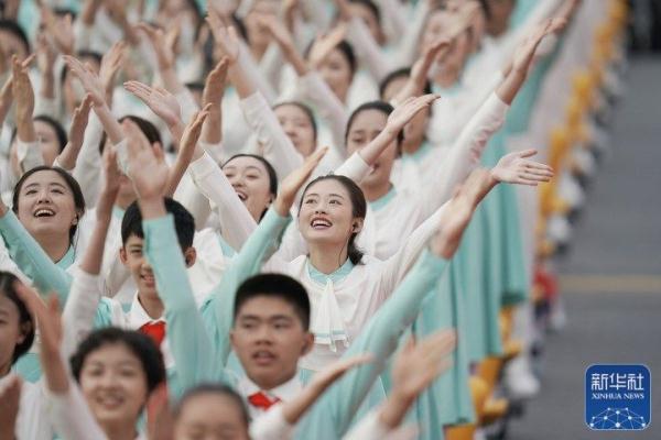△6月29日,庆祝中国共产党成立100周年“七一勋章”颁授仪式在北京人民大会堂金色大厅隆重举行。这是“七一勋章”获得者张桂梅向青少年致意。