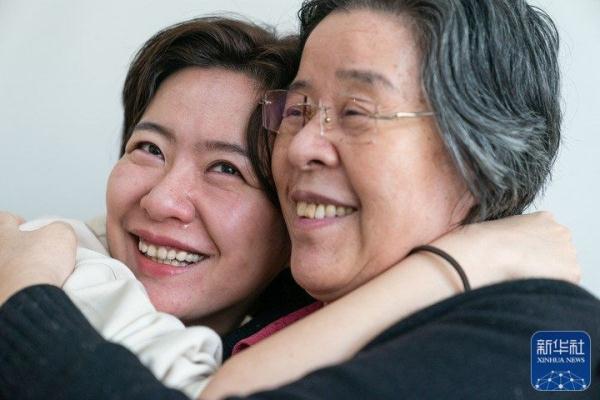 △11月24日,女儿吴姝(左)在北京的住所内抱着刚刚出院的妈妈,脸上挂着幸福的泪水。69岁的沈建群是吉林长春人,做了一辈子设计院工程师,女儿吴姝在新西兰工作、生活。2020年,沈建群被查出肠癌肝转移。他们怕远在海外的女儿担心,选择隐瞒病情、默默治疗,但女儿吴姝还是在一次视频聊天中无意间发现了妈妈患病的端倪。尽管受疫情阻隔,但吴姝还是排除困难回到国内,为妈妈寻找治疗方案,并最终找到北京大学肿瘤医院肝胆外科团队。在多学科诊疗模式下,团队整合手术切除、射频消融等多种手段,为沈建群进行治疗。经过近两周住院治疗,沈建群顺利出院,与亲人团聚,在康复路上继续前行。