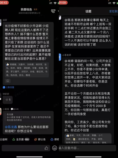 这场被茶颜悦色内部员工称为“史诗级大战”的发生地点为:茶颜悦色钉钉内部企业群。