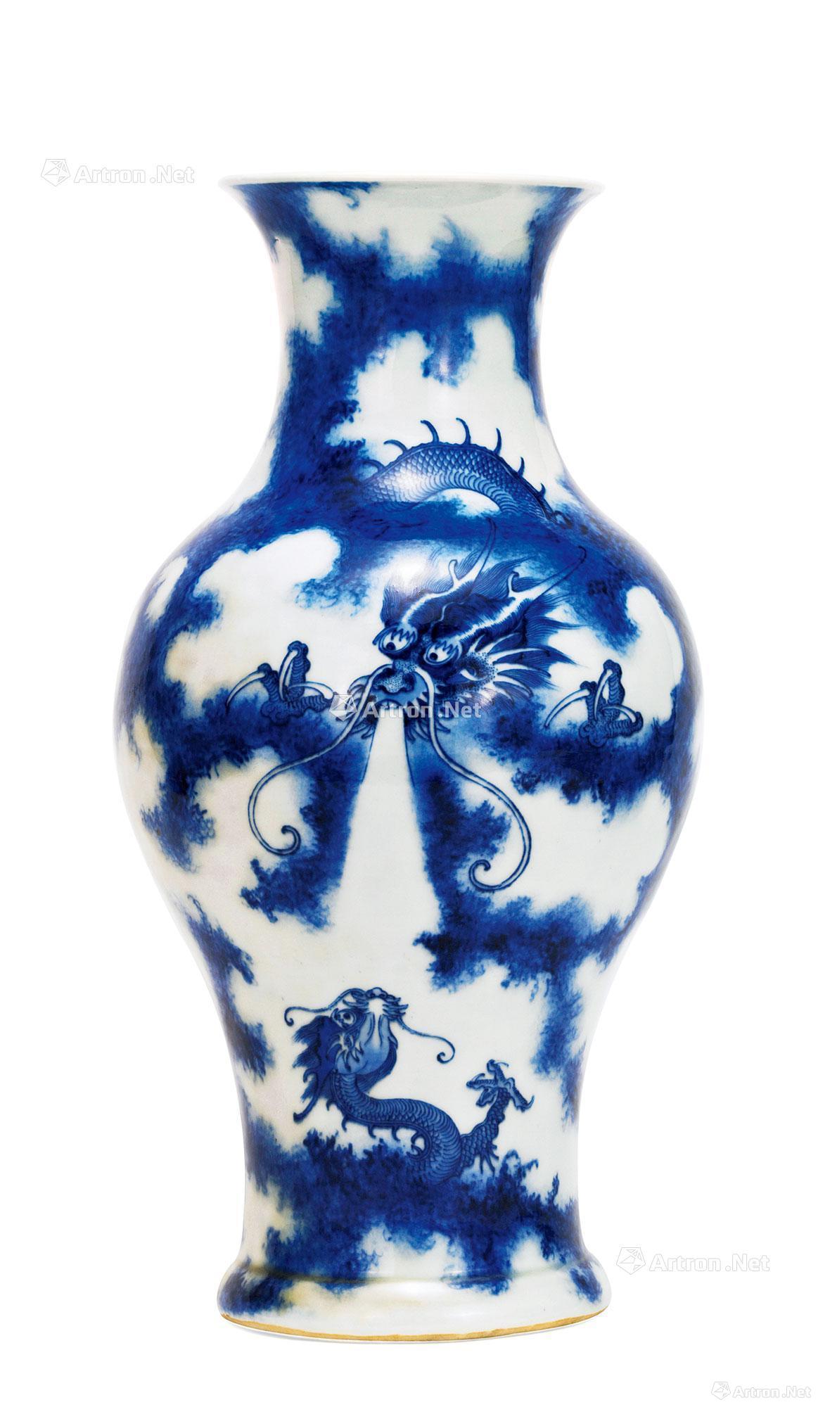清乾隆 唐英制青花苍龙教子诗文观音瓶