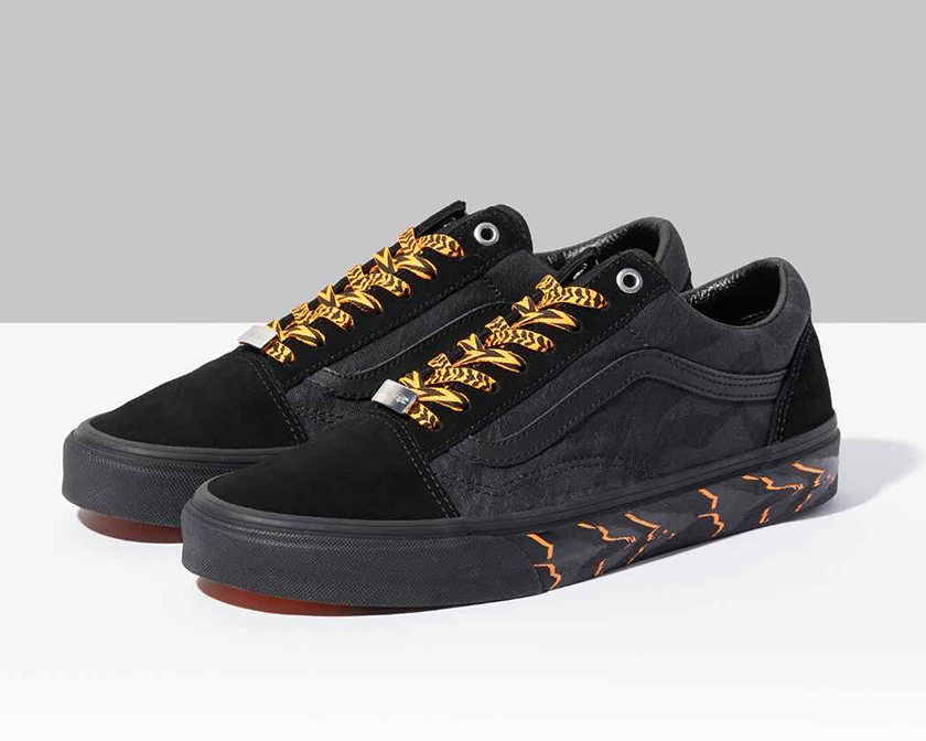 Old Skool发布两款配色,其中一款以黑色老虎暗纹搭配橙黑虎纹的大底包边,营造层次感视觉效果;另一款则选取灰黑水墨印花铺满鞋面,包边印刻“Stay Hungry”主题。