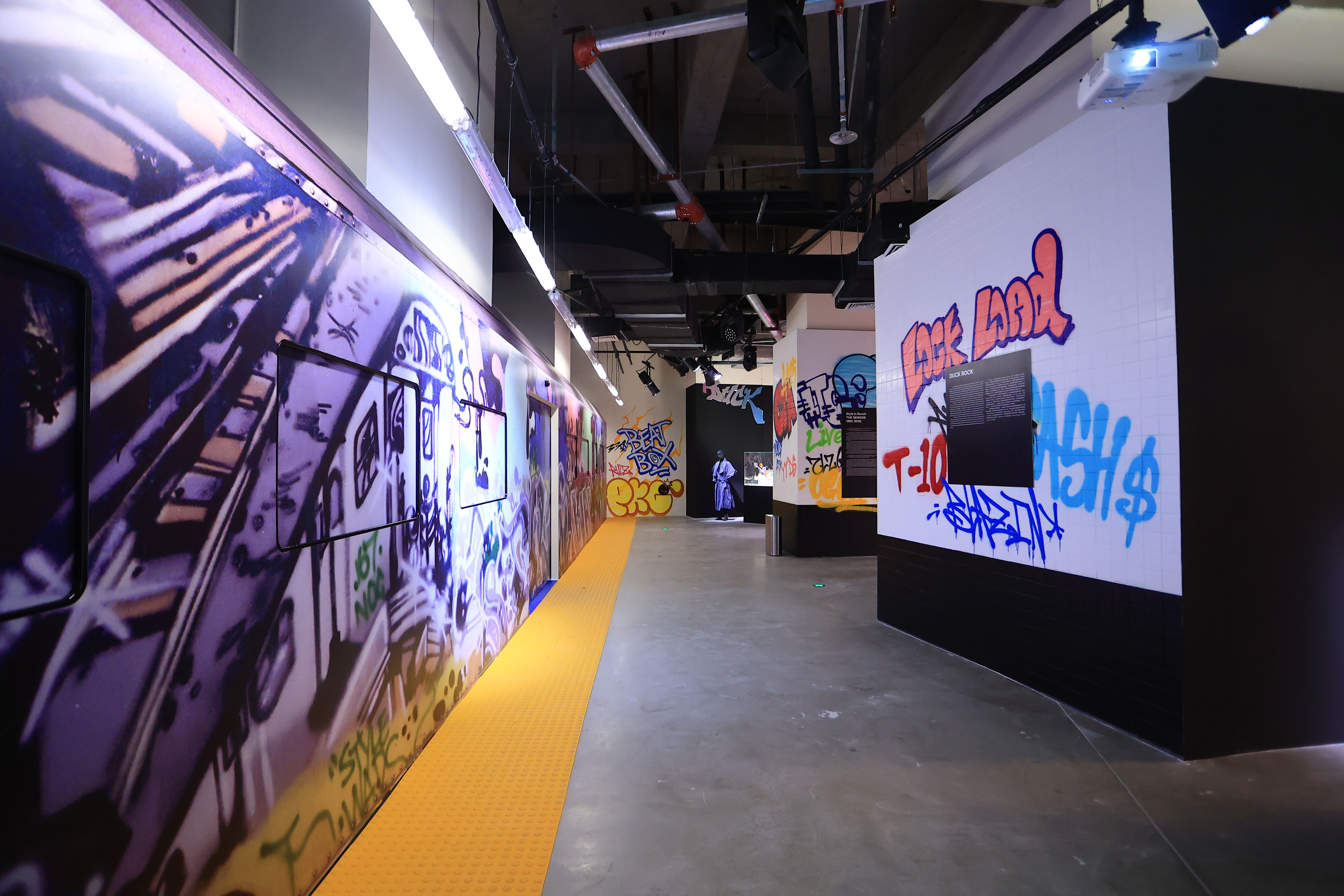 “初露锋芒”主题区通过8个场域形式展示了从1982年至2005年,街头作为音乐、艺术、多元文化和时尚的集中地,将这些文化相互融合并创新的历程。在这里,观众会从1982年伦敦街头的Duck Rock主题区开始,最后以Stüssy和原宿文化结束旅程。