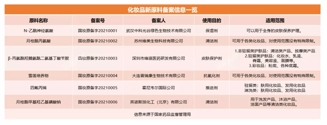 在他们看来,无论新原料来自于国内还是国际,目前已有6款新原料通过备案,迎来加速期,“新原料作为化妆品创新的源头,其备案的加速,也将促进化妆品行业的进一步繁荣”。