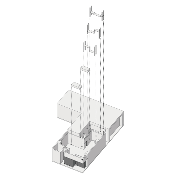 整个画廊的外墙采用磨砂玻璃作为主要材质。这样一来视觉上整个仓库的面积可以得到扩张,而半透明的质感又保证了画廊一定的隐私性。