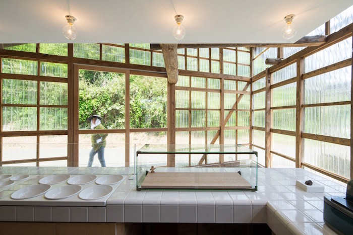 远看像极了蔬菜大棚,但实际上这是一家由渔具仓库改造而成的面包房。而之所以选用透明波纹板作为外墙,是因为这样可以让室内的空间尽可能显得宽敞、明亮些。同时,这也能让路人走过路过能往里看看,也许对于提振店铺销量也有好处。