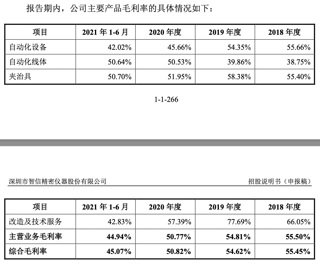 关于报告期内毛利率的整体波动,智信精密解释系公司产品属于非标产品,主要根据客户的个性化需求进行设计和生产。由于不同应用领域、不同客户对产品功能、自动化程度的要求均不相同,相应产品配置差异较大,导致产品之间的价格和毛利率存在差异;同时公司改造及技术服务,由于各个订单改造难度、投入料工费的占比差异较大,当期毛利率受单个项目毛利率差异影响较大。