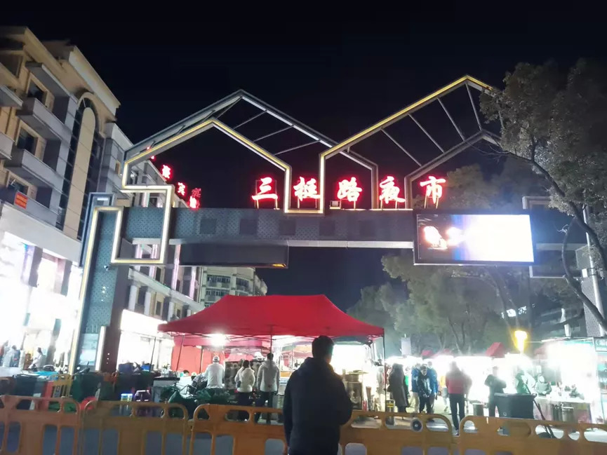 义乌是一个县级市,却拥有全浙江最大的夜市。在三挺路夜市,700多个摊位在夜幕下亮起,数量远超号称台湾省最大夜市的台中逢甲夜市。车流到此止步,随着人流向前,仿佛走进一个零售版的小商品市场。