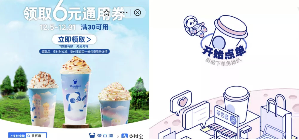 还有茶百道,从12月5日开始,每天派送6元券包,叠加首款仔姜凤梨、云朵系列新品上线,带动双12期间交易笔数单日峰值较上月增长2倍。
