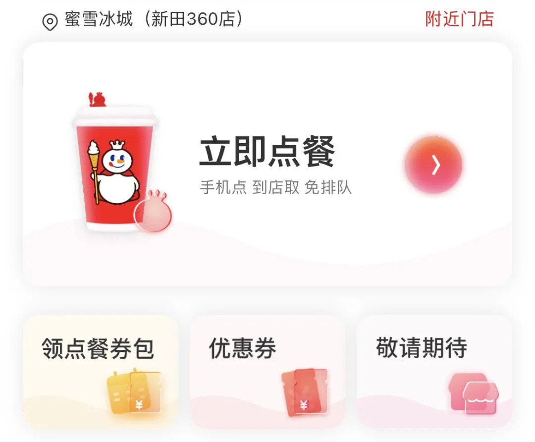 结果,从优惠券、到自助点单功能、查看订单的服务等小功能一应俱全,很快就能方便下单。即使退出后,蜜雪冰城的logo也时常闪现在首页各种活动里,让人忍不住点进去看看。