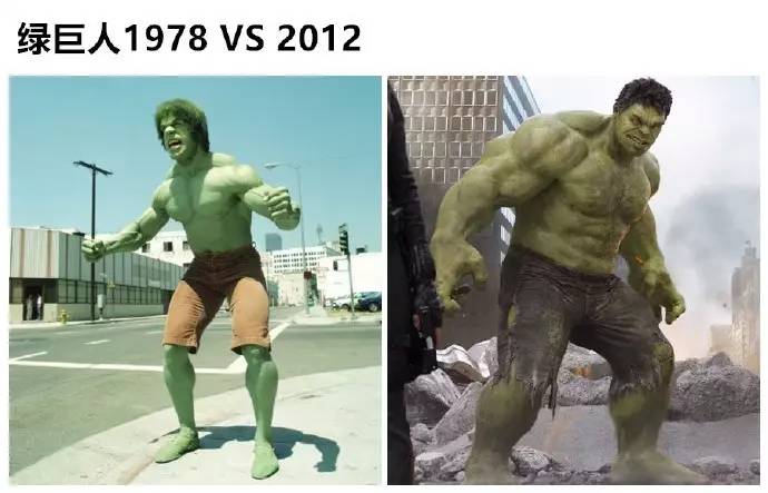左边,我觉得这个绿巨人一点都不巨,有点像个好几天没洗头的网瘾少年。