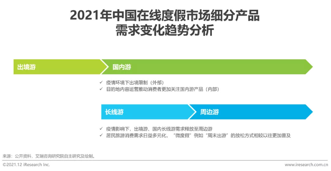 在国外疫情形势严峻的环境下,出境游难度较大,消费者逐渐将出境游需求释放至国内游。但与此同时,国内长线游时常受到疫情零星散发状态等影响,消费者在此情况下,一定程度上不得不选择周边游来完成旅游需求的满足;除此之外,随着居民生活水平的提高,旅游消费需求相较以往呈现更加多元化的趋势,周末出游等“微度假”的旅游方式越来越受到消费者的欢迎。因此,在以上双重因素影响下,消费者的度假选择逐渐本地化、周边化。