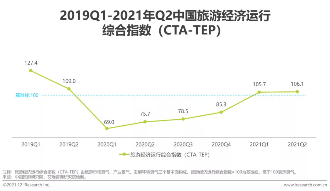 2020年新冠疫情对旅游业带来了较大的冲击和挑战,2021年上半年,除局部地区受散发疫情扰动外,旅游市场总体保持平稳有序,旅游经济运行综合指数正在步入从“相对景气”到“景气”通道。受疫情影响,2021年暑期多地紧急叫停跨省旅游等活动,暑期旅游市场遇冷。随着疫情防控转入常态化,对旅游景区或旅游企业而言,建立抵御风险的可持续运营能力更为重要,数字化升级则是重要的抵御风险手段之一。消费者经历了一年的禁足,已经将数字化产品变成了生活的必备品。在后疫情时代,对于旅游商家来说,数字化转型升级迫在眉睫,运用线上平台与线下产品联动,在出游前做到数字化触达、出游中提供多元化产品服务与供应、提高景区智能化水平等将是旅游业转型升级的关键。