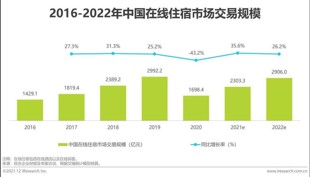 随着疫情态势的缓和以及出游需求的逐渐恢复,预计2021年在线住宿市场交易规模将实现35.6%的同比增长。