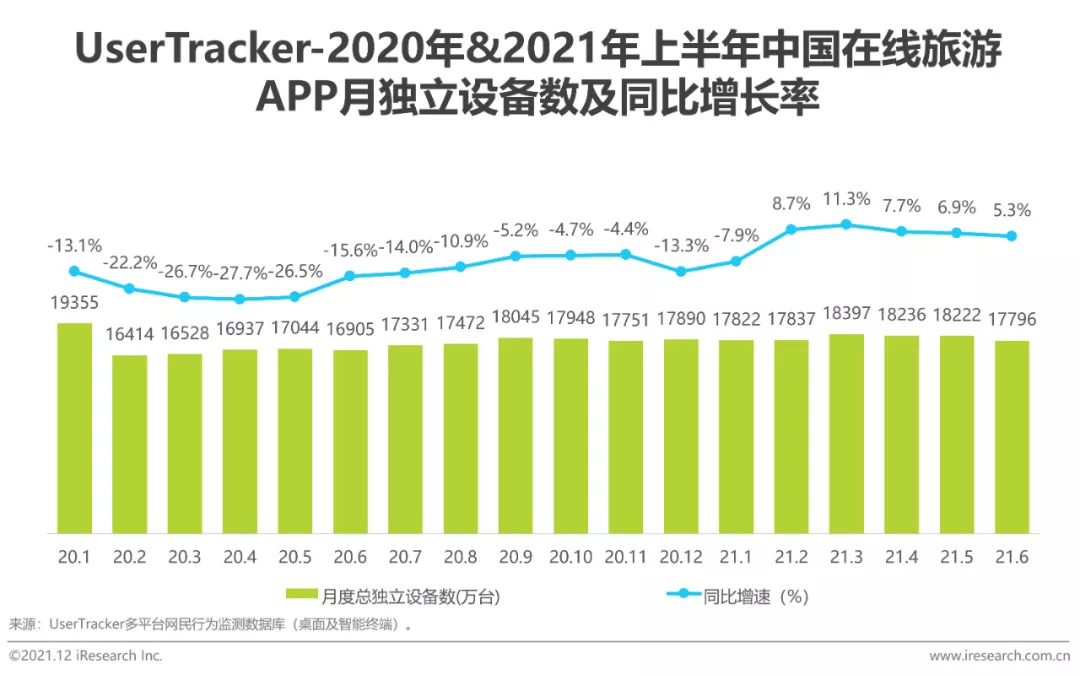 随着中国国内疫情得到了有效控制后,2020年下半年开始,在线旅游月活跃用户数逐渐恢复,国内旅游市场呈现稳步复苏态势。