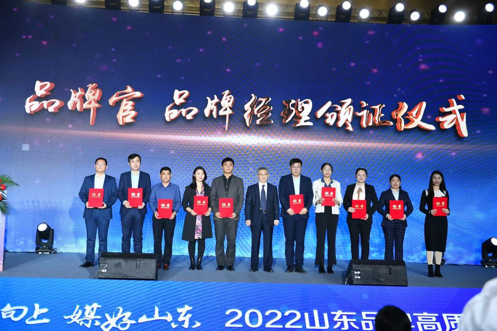 12月21日上午,在“2022年山东品牌高质量发展论坛活动”上举行了隆重的颁证仪式,来自10家企业的优秀品牌官、品牌经理代表上台领证。