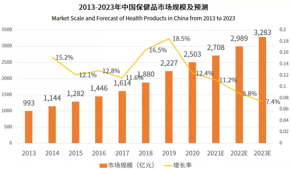 尤其在新冠疫情反复发酵影响下,消费观念的升级,生活方式的转变,催化全民保健意识加速觉醒,保健品行业得以快速发展。