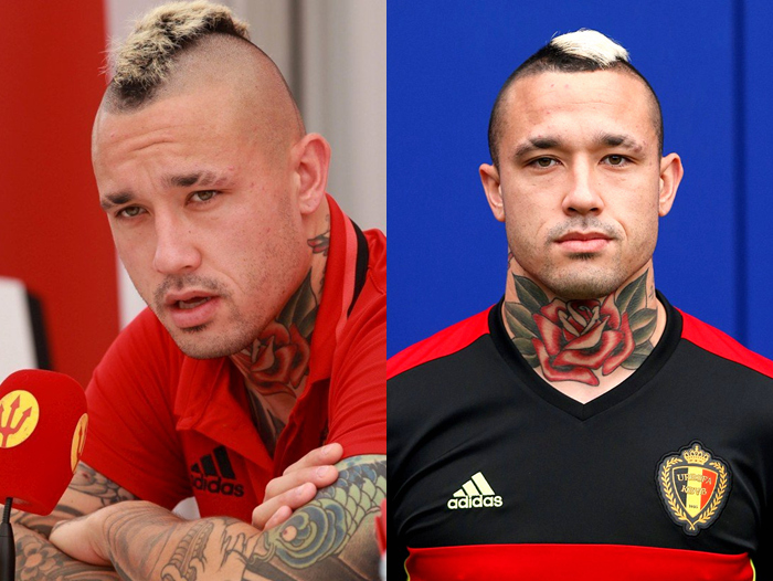 而本届欧洲杯上,纳英戈兰依旧保留了自己经典的莫西干造型。不仅如此,颈部的玫瑰纹身图案也和自己一贯的搞怪风格相得益彰。