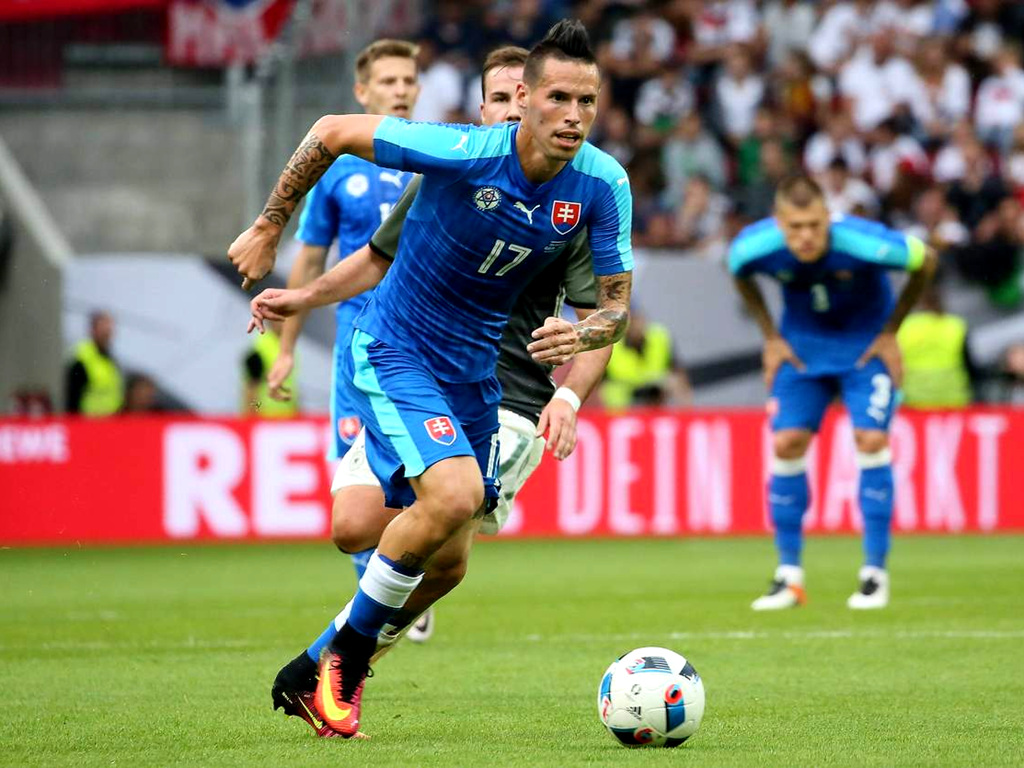 在首轮对阵威尔士的小组赛中,哈姆西克开场仅三分钟就险些帮助斯洛伐克取得领先——他从禁区外一路过掉威尔士的四名防守球员,面对门将左脚打门,可惜回防的本·戴维斯在门前将这粒必进球解围。