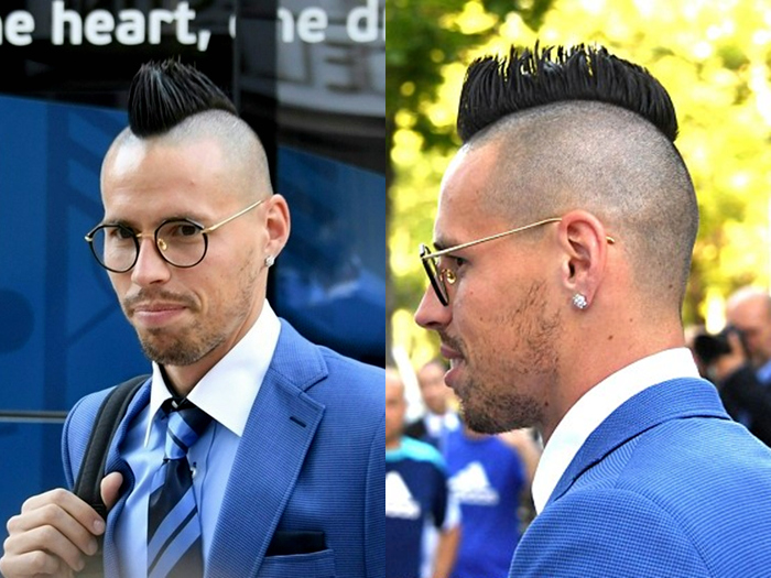 那不勒斯中场哈姆西克的发型也是十分具有个性,莫西干一般是斯洛伐克人的钟爱。即便是平时相对普通的打扮,他的发型也往往十分引人注目。(图片来源:网络)