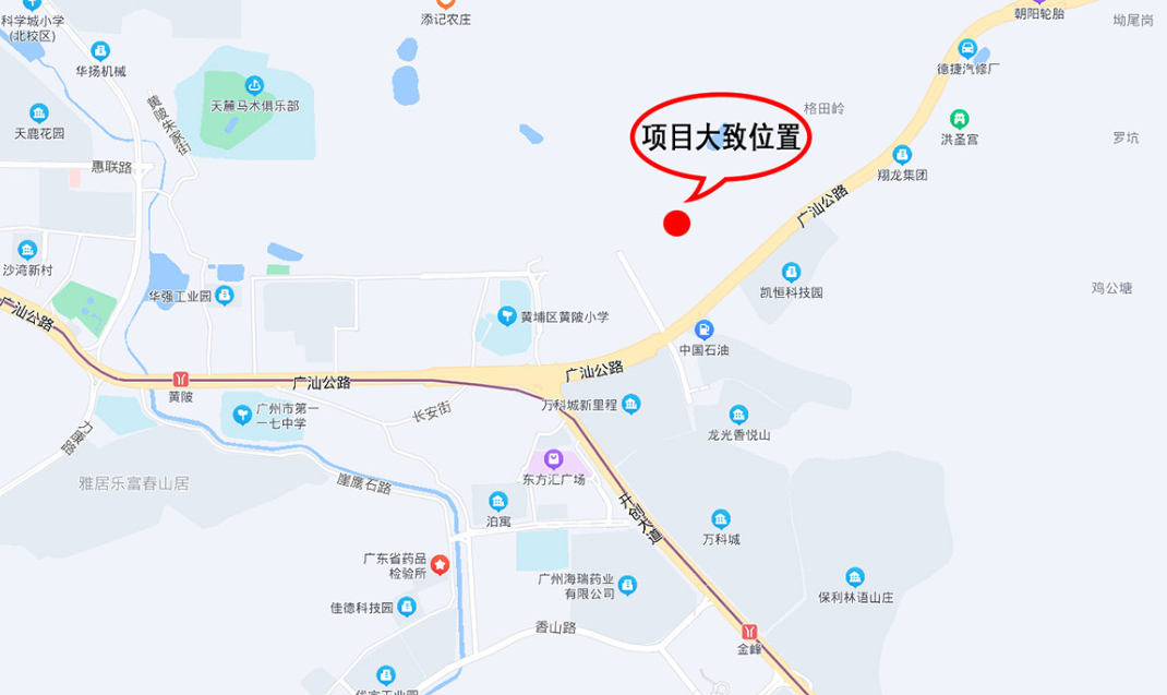 振业天成位于黄埔区广汕路以北、黄埔军校小学西侧,为二类居住用地(R2)。