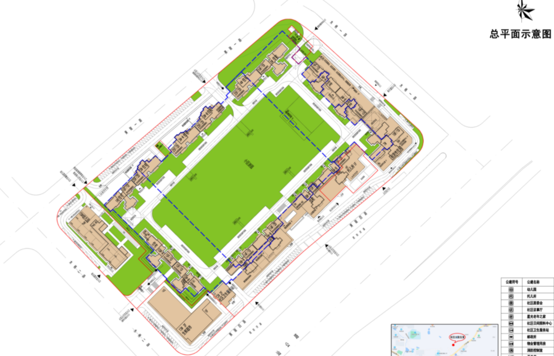 社区的整个设计布局呈现围合式设计,部分住宅楼围绕小区游园建设,居住体验感较好。