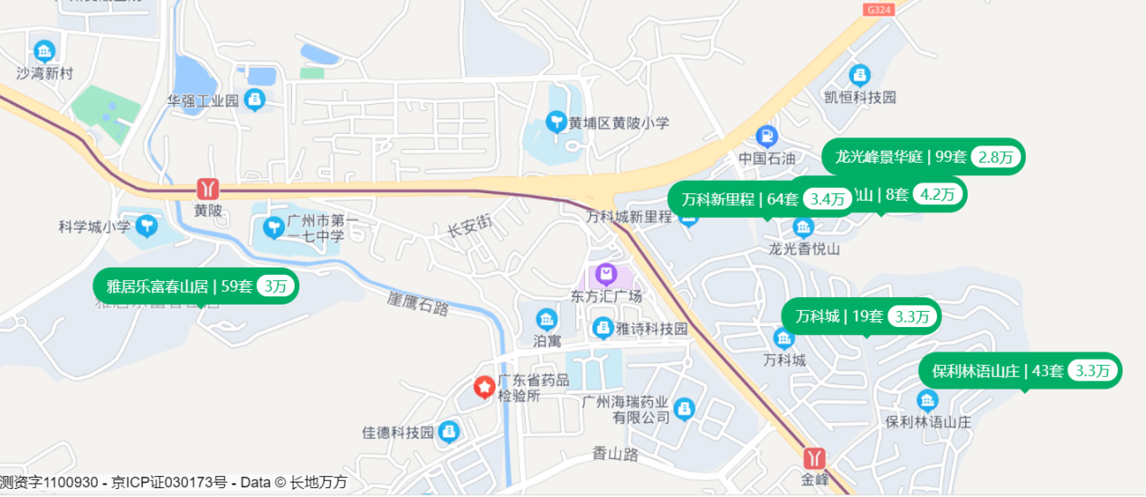 二手房方面,片区有龙光峰景华庭、万科新里程、龙光香悦山等项目,价格在2.8-4.2万/㎡左右。