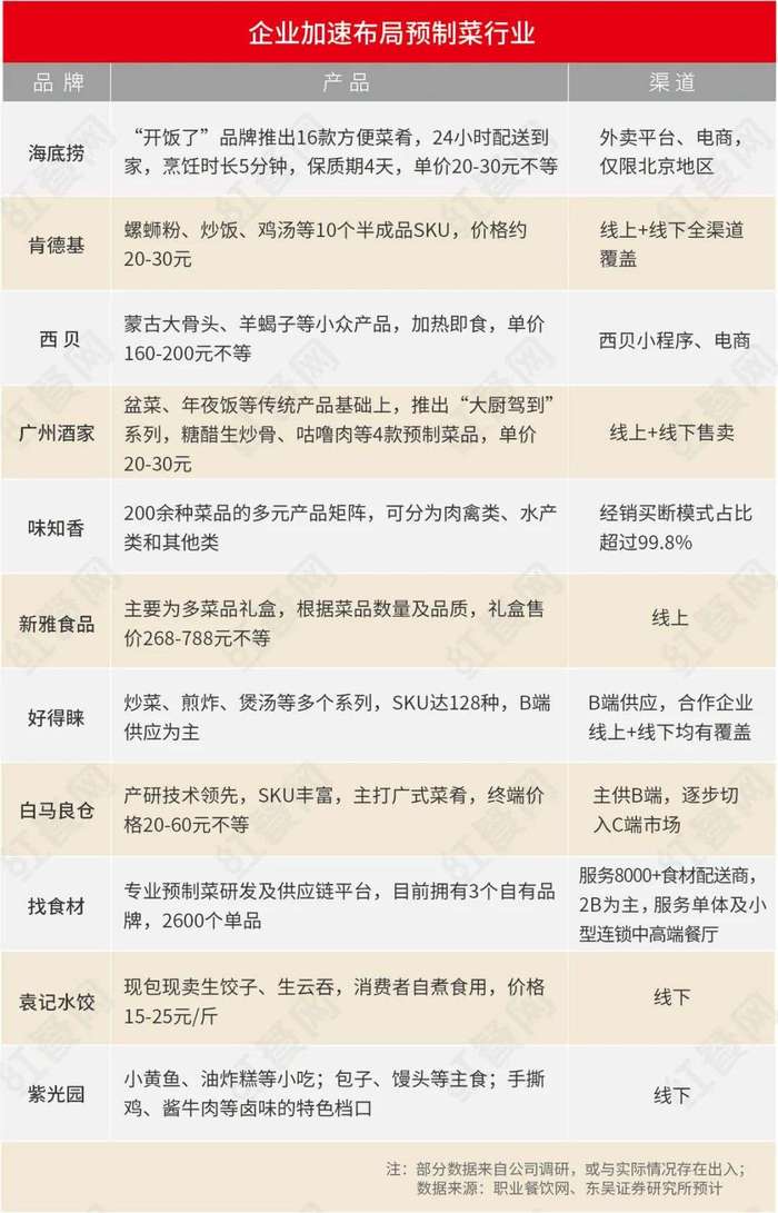 从海底捞、小龙坎到九毛九、西贝,从眉州东坡、广州酒家到肯德基,从火锅到快餐,从传统中餐到西餐,各大品类、各大菜系的头部餐企,都推出了自己的半成品菜,强势进入战局。