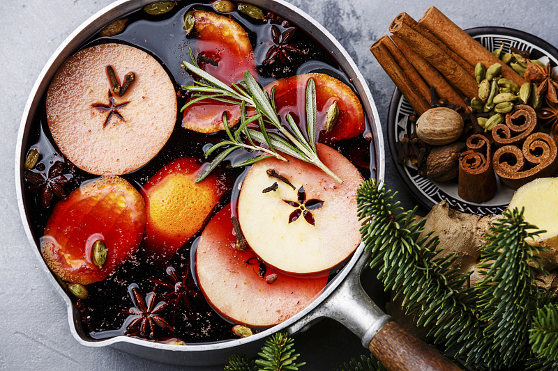 热红酒是欧洲传统热饮,制作配方并不难,简单来说就是把葡萄酒、蜂蜜、八角、肉桂,月桂叶、丁香、百里香等各种香料,加上苹果、橙子放在一起煮。在西方国家,热红酒是很受欢迎的冬季热饮。尤其是到了圣诞节,在热闹的圣诞集市中,几乎人人手里都有氤氲馥郁的热红酒。英国作家狄更斯在其短篇小说《圣诞颂歌》里还曾专门写过这种习俗。