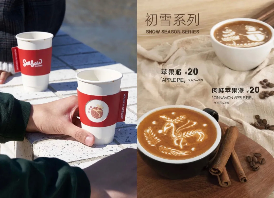 在咖啡领域,肉桂则有了更多体现,比如星巴克去年秋季的南瓜丝绒系列。Seesaw上新香橙肉桂红美式,Manner上新肉桂苹果派拿铁。