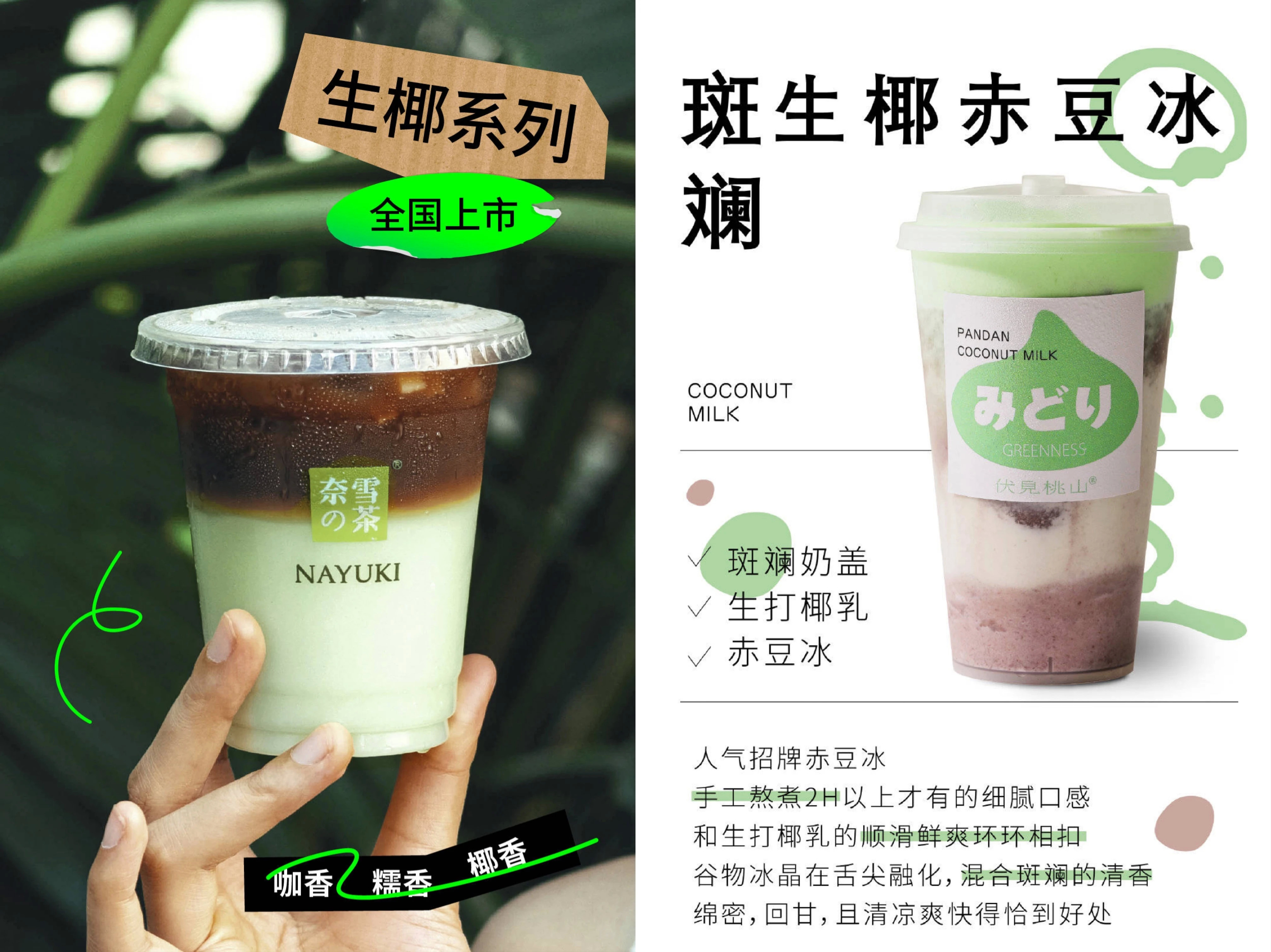 在东南亚地区中常见的斑斓,被各大品牌作为系列款上新,奈雪的茶、伏小桃各推出3款斑斓系列产品。