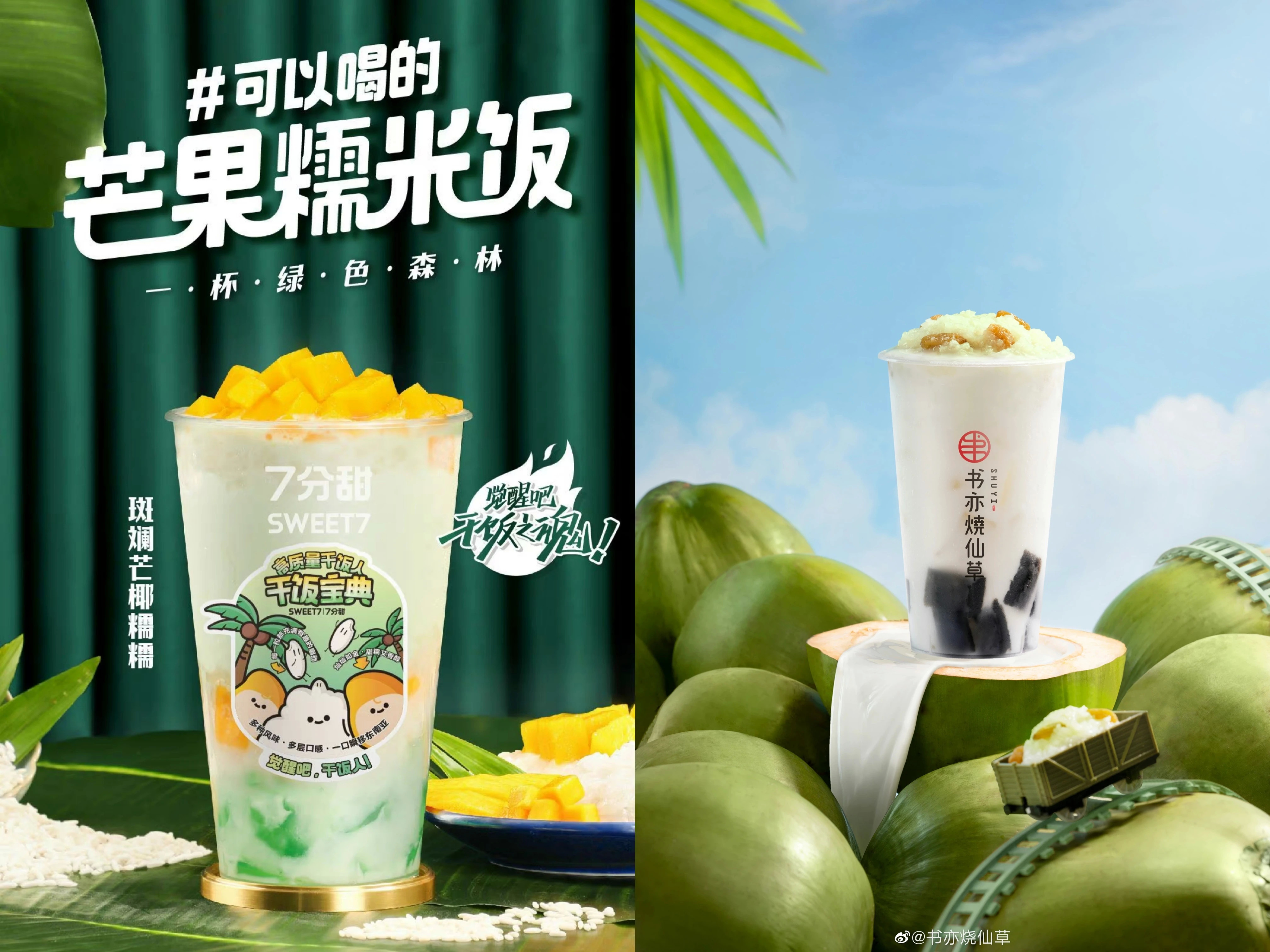 7分甜上新斑斓芒椰糯糯,书亦烧仙草上新斑斓菩提厚乳,并将糯米升级为斑斓糯米,冰雪时光上新2款斑斓系列产品。