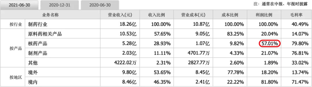 核医药行业具有天然的高技术壁垒,以及创新药高成长的特征。率先完成全产业链一体化布局,东诚药业建立了令竞争对手难以逾越的门槛。如今,公司核药板块利润占比已达57%,已经成为其最大利润来源。