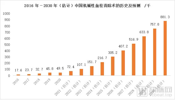 我国每年新发的脑卒中病人超过百万,但机械性取栓手术2020年仅有4.9万台,渗透率还非常低。