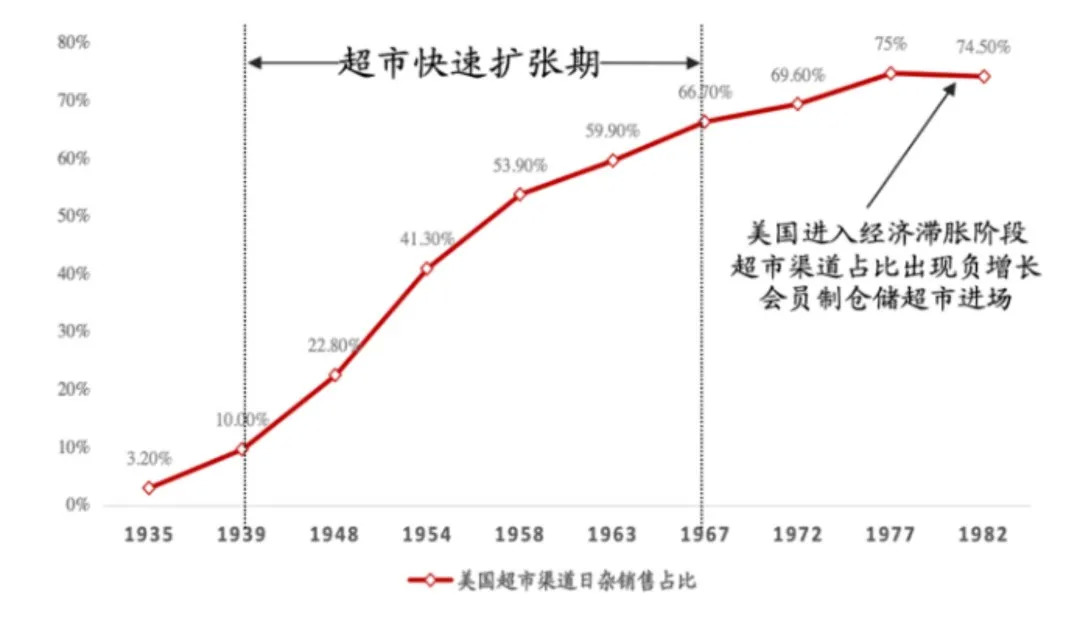图:美国超市在上世纪40-60年代快速扩张(来源:中泰证券研究)