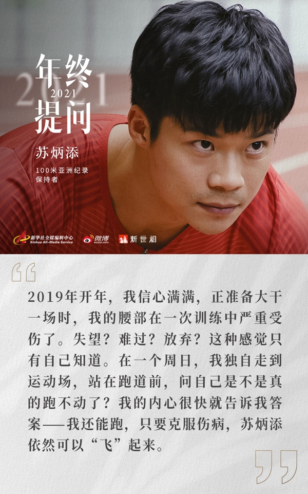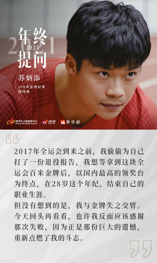 新华社联合新浪微博和新世相共同发起#年终提问2021#活动,邀请4位时代前行者——张桂梅、张文宏、苏炳添、王赤回应大家在成长道路上提出的困惑和思考。根据来自全网的留言和提问,12月20日起,我们陆续发布4封真挚的回信,4位回信者将分享自己对生活最真诚的思考。